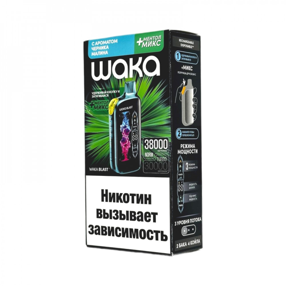 WAKA BLAST 38000 Hard - Черника малина + ментол микс - купить в Верхней Пышме